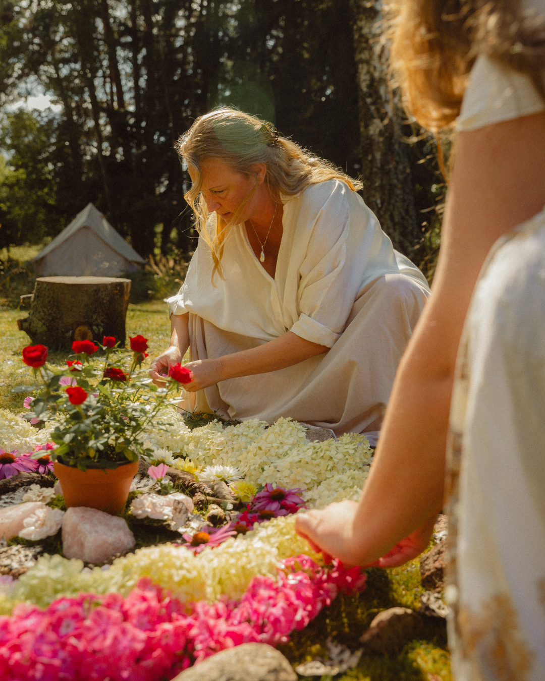 • The Lotus Belle Tent for circles, workshops, and ceremonies
